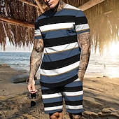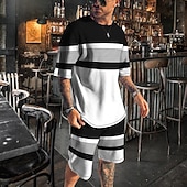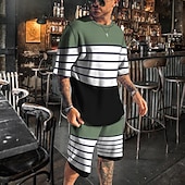 More information about Men's T-shirt Suits 2 Pieces Outfits Tee & Shorts Short Sleeve Crew Neck Summer Color Block Stripes Fashion Casual 2 Piece Vacation Daily Wear Going out Black Blue Brown Top Tee for Men