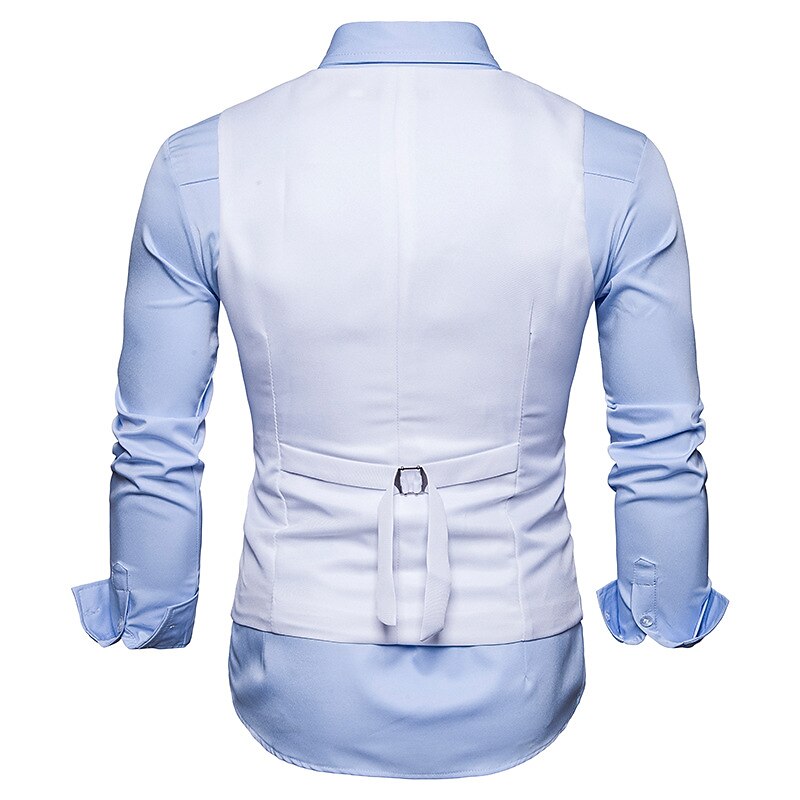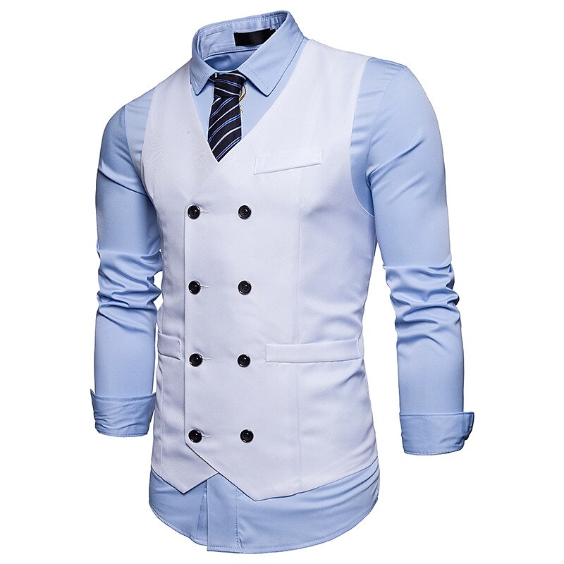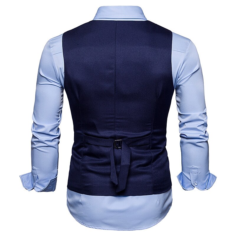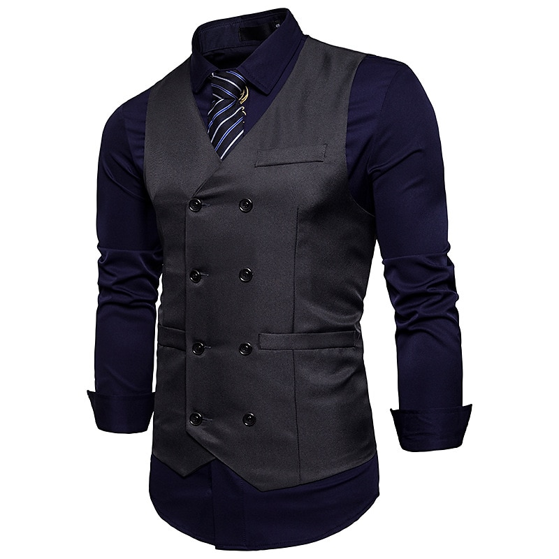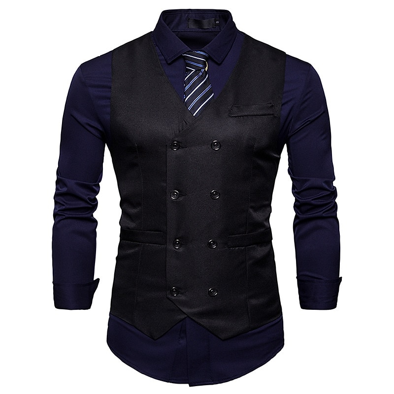 More information about Men's Vest Waistcoat Wedding Work Street Business Elegant Business Fall Pocket Polyester Breathable Solid Color Double Breasted V Neck Regular Fit Black White Wine Navy Blue Vest