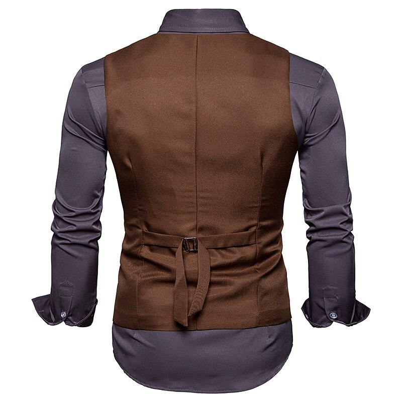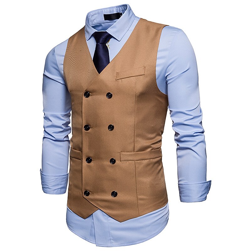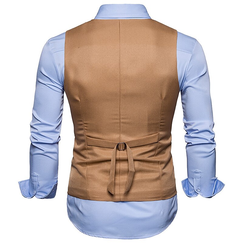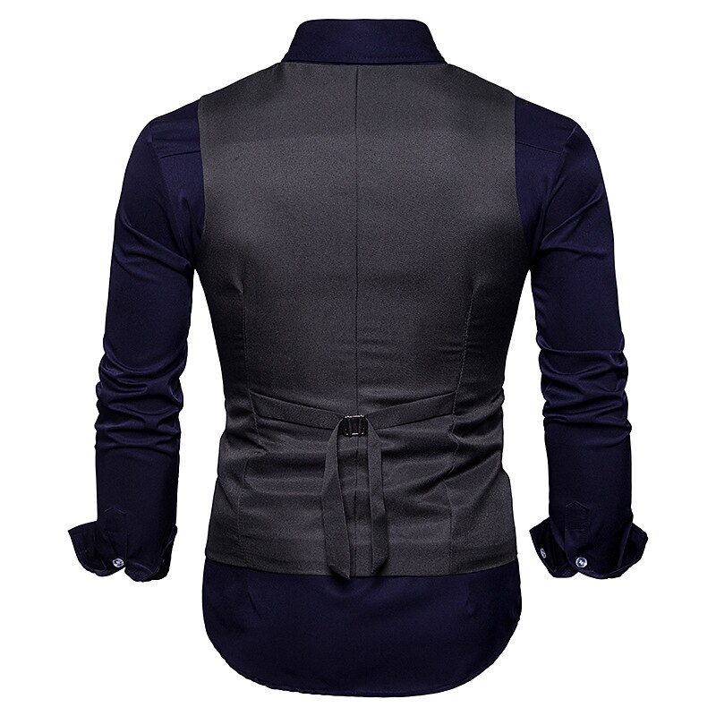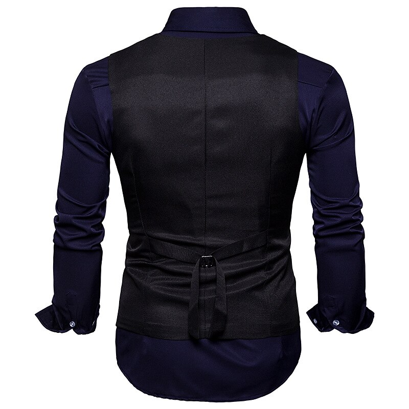 More information about Men's Vest Waistcoat Wedding Work Street Business Elegant Business Fall Pocket Polyester Breathable Solid Color Double Breasted V Neck Regular Fit Black White Wine Navy Blue Vest