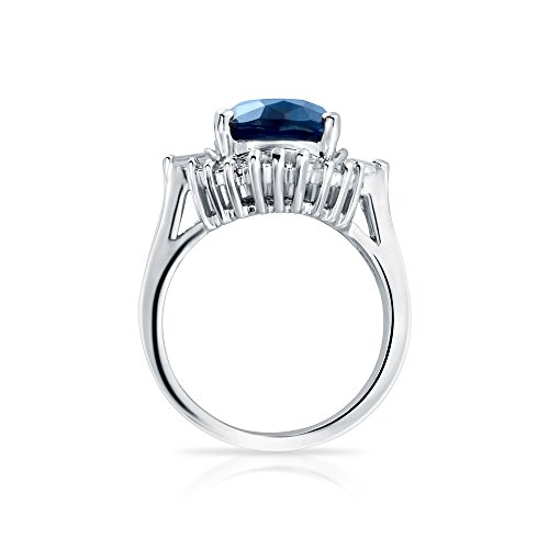 Personalize Vintage Art Deco Style Cocktail Ring With Large Oval Solitaire AAA CZ Baguette Halo Simulated Sapphire Blue Green - 5-15 CTW Customizable 6
