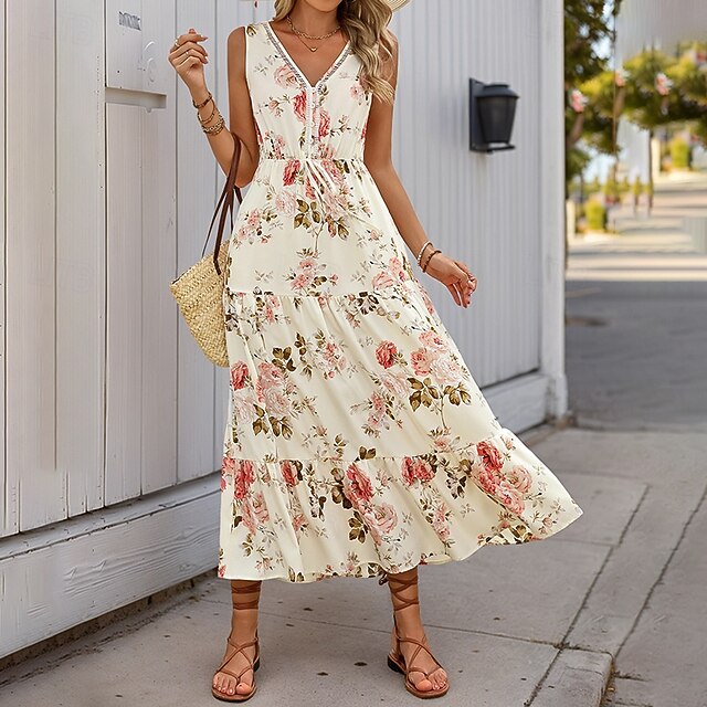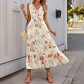 Women's Maxi Dress A Line Dress Floral Dress Stylish Casual Vacation Casual Daily Regular Fit Floral Short Sleeve V Neck White Summer Spring 7