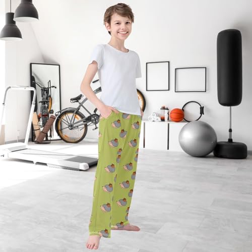HOT ! Boy's Pj Pants Grey Hedgehog Acorn from Forest Lounge Bottoms Elastic Waist Kids Joggers with Pockets Size 6-14