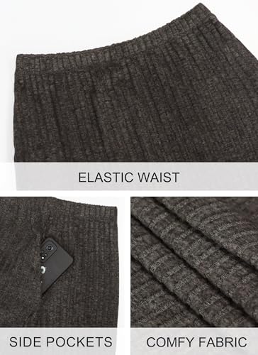 More information about Herou Women Maxi Skirts Ribbed Solid Sweater Winter Skirt Elastic Waist Elegant Warm Long Skirts with Pocket for Women Fall