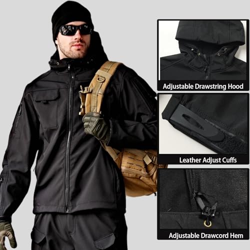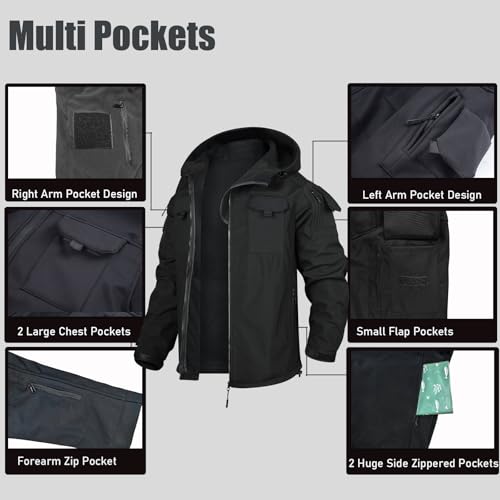 • [Water & Wind Resistant] Our tactical jacket for men is made of high quality polyester and thin micro fleece lining . Delicate stitching,lightweight and presentable. The outer hydrophobic, water resistant, windproof, can withstand light rain. And inside soft, skin friendly and comfortable.