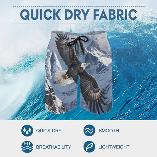 HOT ! Flying Bald Eagle Men's Swim Trunks Quick Dry Beach Shorts Board Shorts Bathing Suits with Pockets