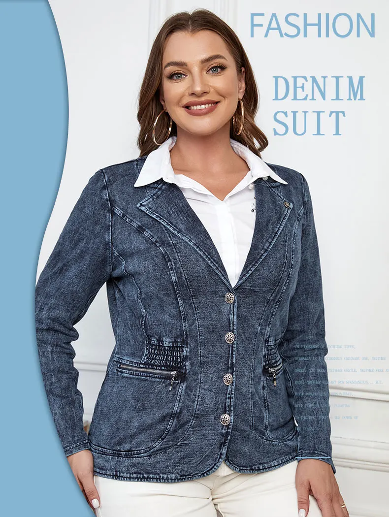 Women's plus Size Casual Denim Jacket Loose Fit Classic Style Button Detailing Long Sleeve