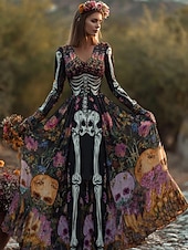 $34.99 - Halloween Women's Skeleton Maxi Dress Pleated Dress Boho Date Going out Regular Fit Skull Long Sleeve V Neck Black Orange Light Orange Fall 2025. Shop for cheap Halloween Dress online? Buy at lightinthebox.com on sale today!