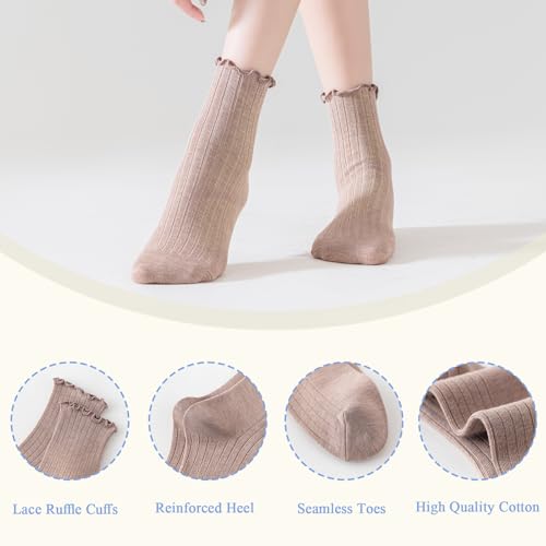 • Ruffle cuffs:Frilly socks for women are designed with ruffle cuffs,cute and sweet.The rubber band cuffs prevent them from slipping off easily and provide a perfect fit