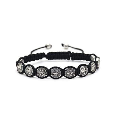 HOT ! Fuqimanman2020 6pcs Saint Benedict Medal on Adjustable Cord Wrist Bracelet Set Cross Mary Virgin Saint Jude for Women Men Evil Protection Prayer Rosary Catholic Religious Jewelry