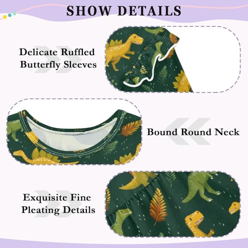 Cute Dinosaur Green A Girls Shirts Cotton Long Sleeve Ruffle Toddler Tee Tops 4