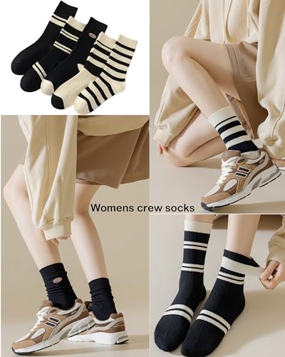Womens Cute Crew Socks Casual Athletic Aesthetic Striped Socks Neutral Cotton Socks Gifts for Women Girls Clothes 5