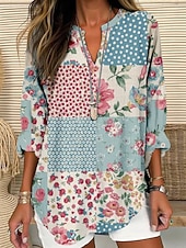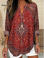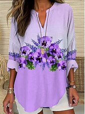 More information about Women's Blouse Tunic V Neck Long Sleeve Boho Casual Ombre Graphic Geometric Vintage Daily Stylish Regular Tops Daily Print White Blue Sky Blue Light Purple Purple Fall