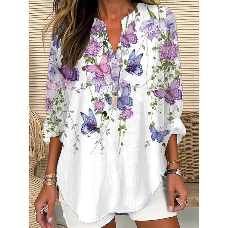 HOT ! Women's Blouse Tunic V Neck Long Sleeve Boho Casual Ombre Graphic Geometric Vintage Daily Stylish Regular Tops Daily Print White Blue Sky Blue Light Purple Purple Fall