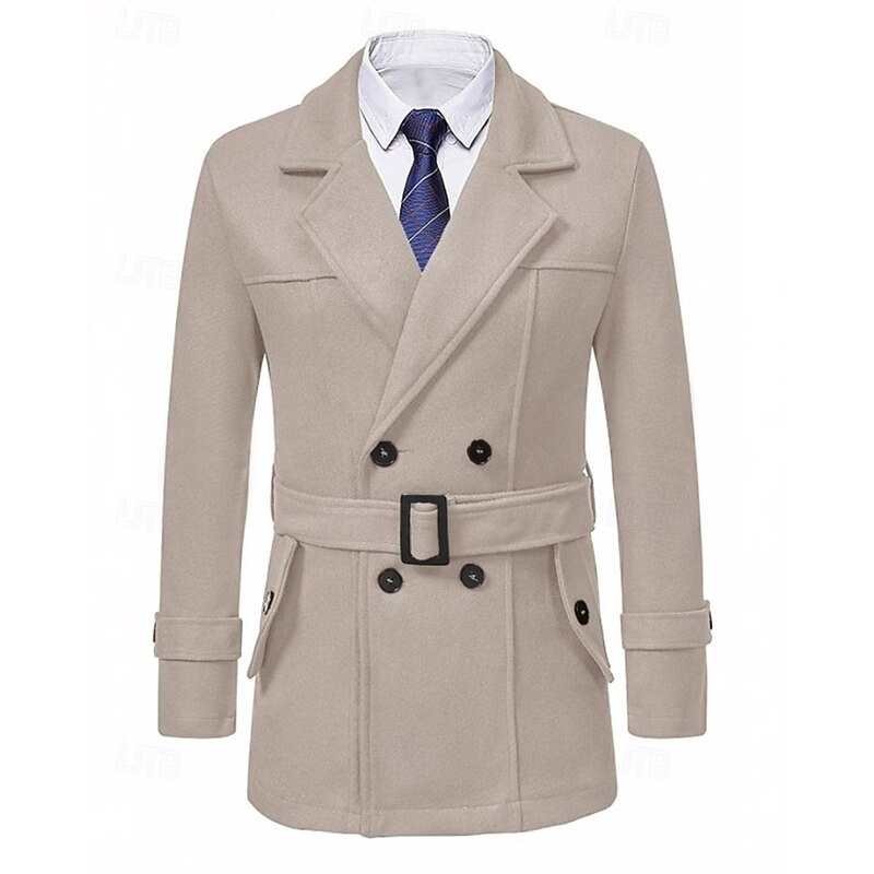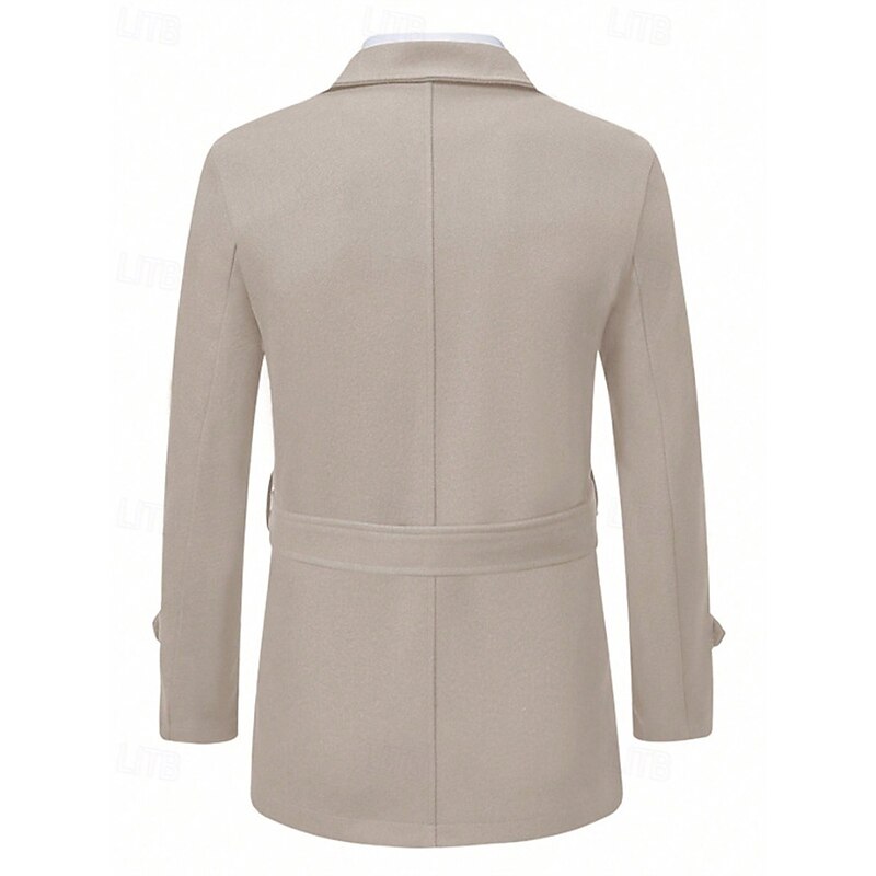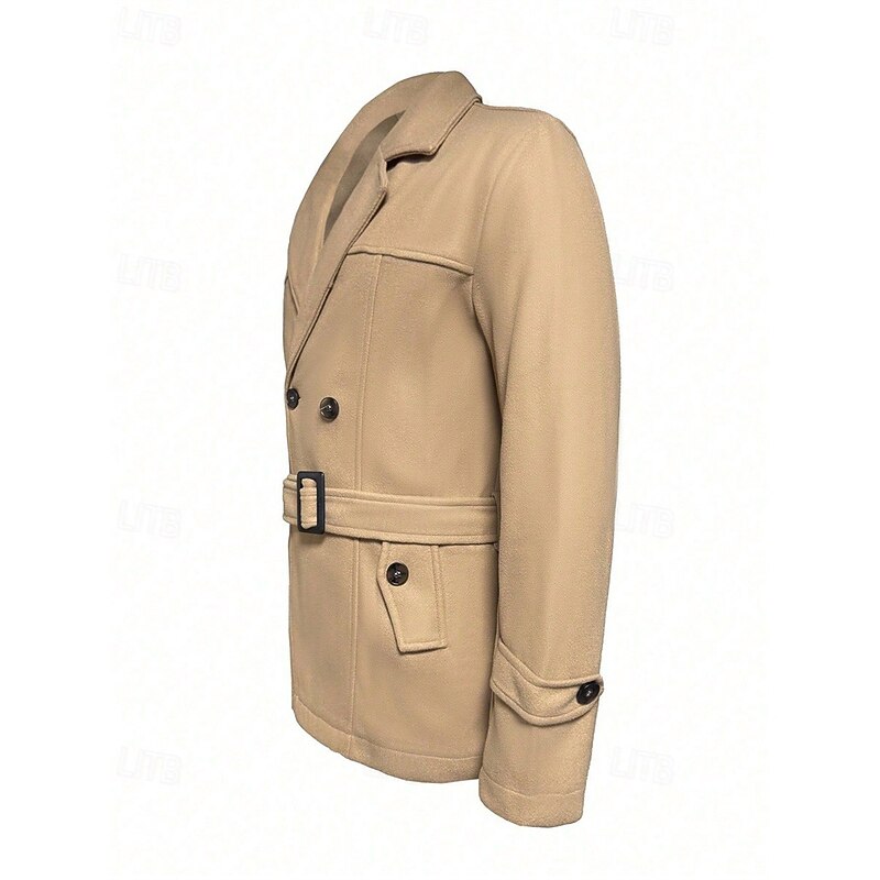 More information about Men's Peacoat Trench Coat Vacation Daily Fall Winter Polyester Thermal Warm Windproof Outerwear Clothing Apparel Fashion Classic Plain Pocket Lapel Double Breasted