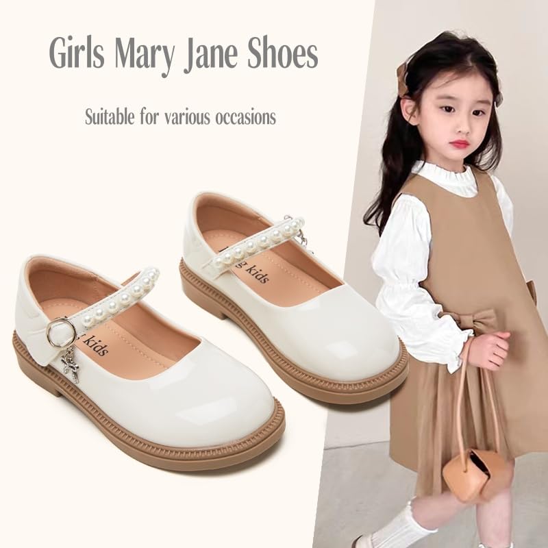 HOT ! Little Girls Mary Jane Ballerina Ballet Flats for School Wedding Party - Pearl Strap Toddler Flower Girl Dress Shoes