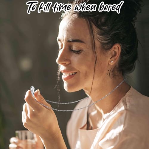 HOT ! Worry Stone Necklace for Women,Anxiety Relief Fidget Jewelry,Sliver Oval Peaceful Thumb Pendant Necklace,Meditation Relaxation Stress Relief Pendant