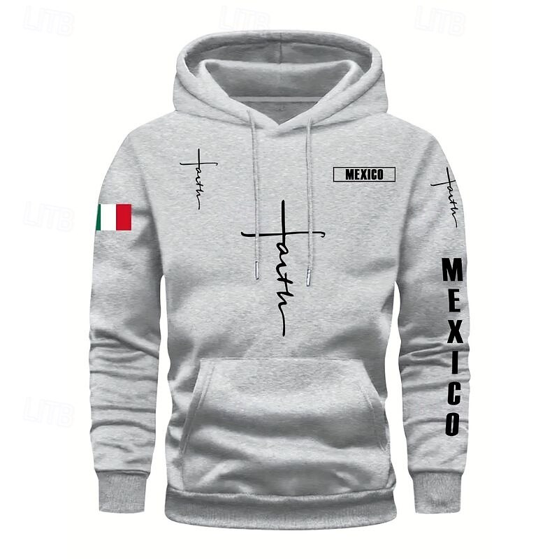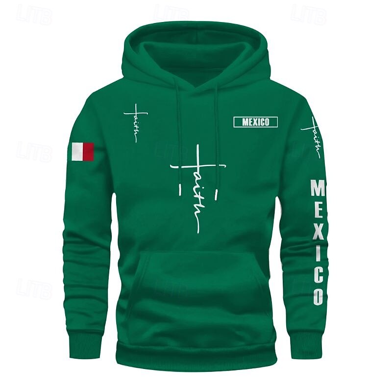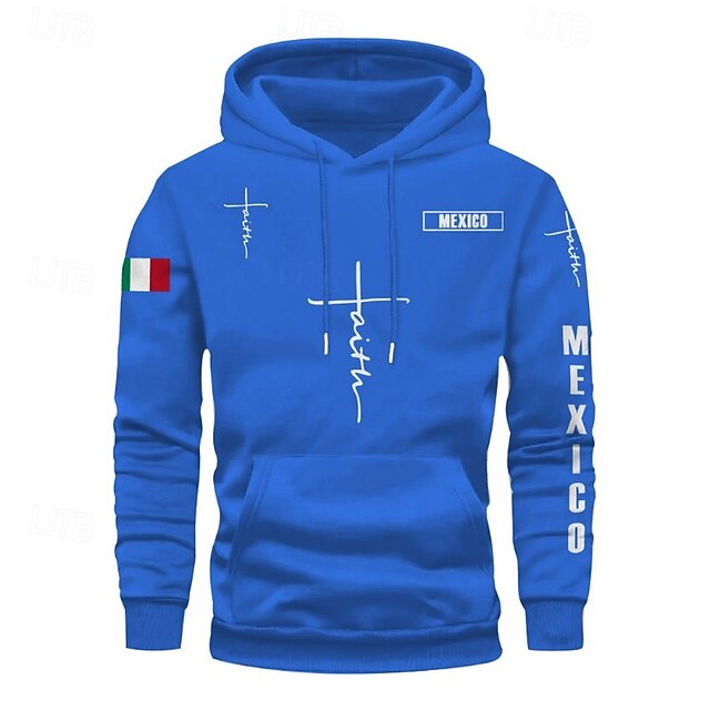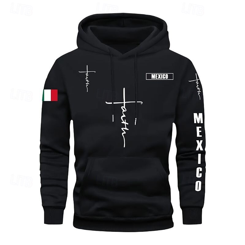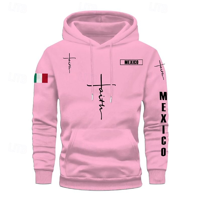 More information about Men's Hoodie Black Pink Red Blue Green Hooded Flag Cross Pocket Drawstring Front Pocket Sports & Outdoor Daily Holiday Polyester Streetwear Graphic Casual Fall Winter Clothing Apparel Hoodies