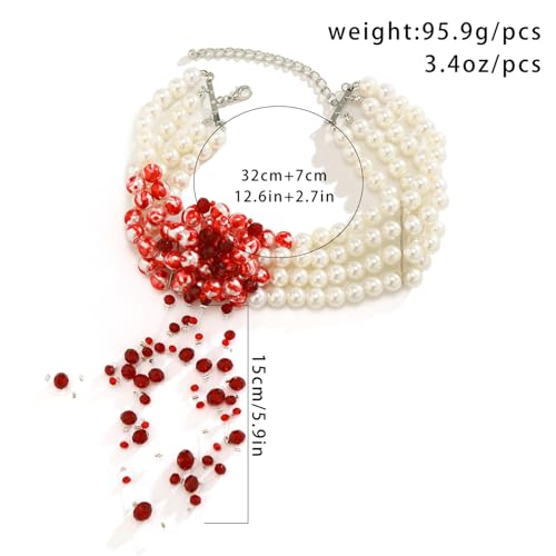 More information about Gothic Blood Pearl Necklace for Women, Adjustable Dripping Blood Choker Layered Bleeding Pearls Necklaces Punk Bloody Tassel Clavicle Halloween Jewelry