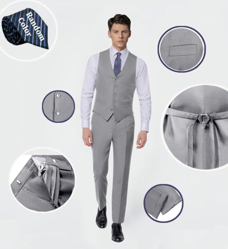 WOMS Mens 2 Pieces Suits Vest Pants Set Slim Fit Wedding Groomsmen Suit for Men Formal 3
