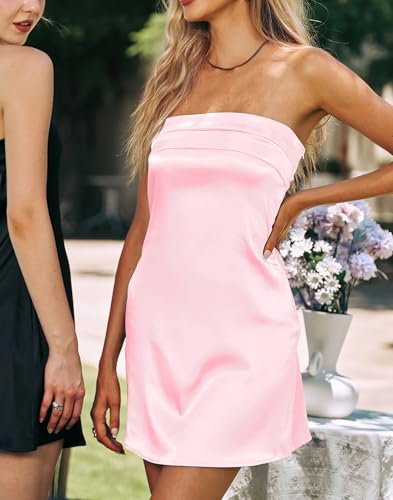 • [Strapless mini dress] - This tube dress features open back, elasticated backband, folded layer front, hidden side zipper, low cowl back, sleeveless, slim fit, strapless summer dress, bandeau dress, tube fitted dress