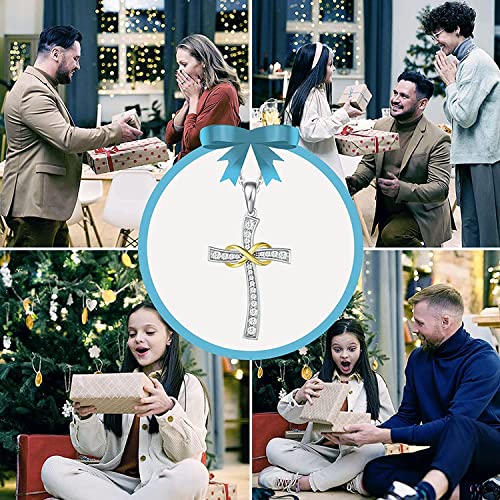 FANCIME White Gold Plated 925 Sterling Silver Royal Crown Yellow Infinity Cross Crucifix Pendant Necklace Jewelry Gift for Women Girls, 18 INCHES with Extender 4