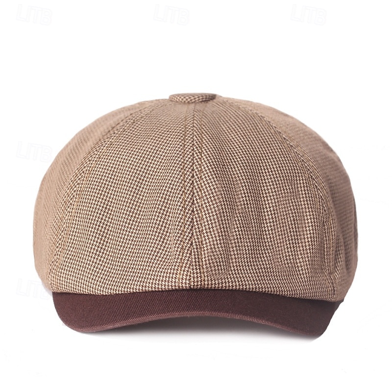 Men's Sun Hat Bowler Hat khaki Light Grey Cotton Vintage Fashion Casual Street Daily Plaid Sunscreen Breathable 1