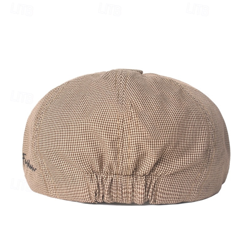 Men's Sun Hat Bowler Hat khaki Light Grey Cotton Vintage Fashion Casual Street Daily Plaid Sunscreen Breathable 4