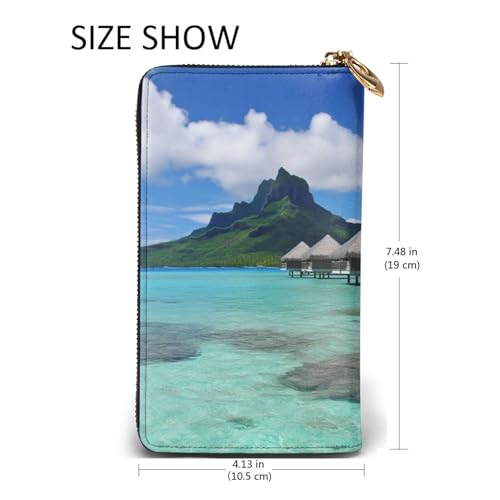 Tahiti Beach Wallet for Men Women Long Purse Leather Clutch Large Business Handbag Travel Phone Holder Credit Card Holder Money Case with Zipper Leather Wallets Gift 1