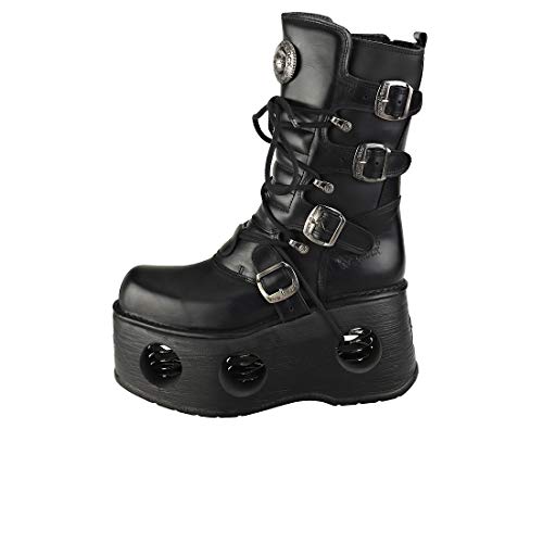 New Rock Shoes - Unisex Leather Mid-Calf Boots with Neptune Spring Soles Black 6