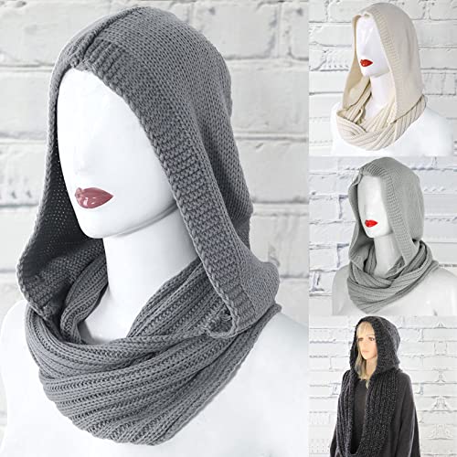 HOT ! Thereisno Women Winter Crochet Knit Hood for Infinity Scarf Outdoor Windproof Warm Long Shawl Wrap Solid Color Earflap Hat Neck Wa Hoodie Scarf