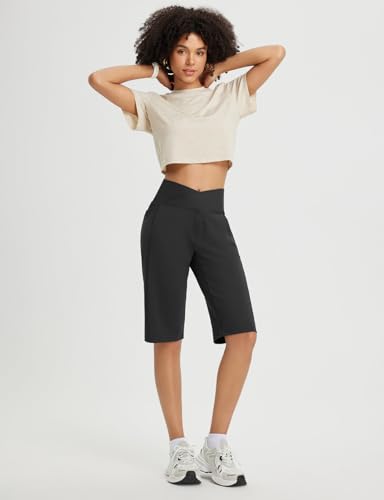 baleaf Womens Bermuda Long Shorts 14" Knee Length Capris High Waisted Athletic Shorts with Pockets Summer Stretch Loose 6