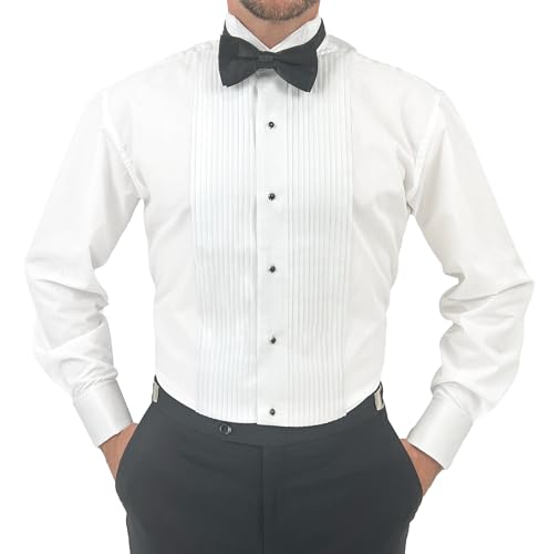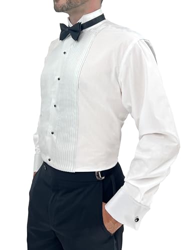 HOT ! Sir Gregory Men's Fitted Tuxedo Shirt with Wing Collar French Cuffs and 1/4 Inch Pleat