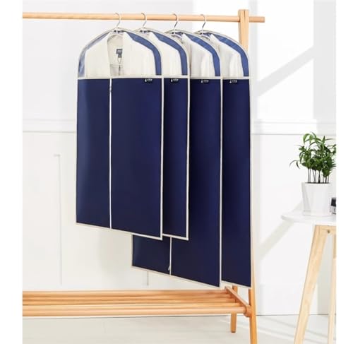 Clothes Cover 5pcs Hanging Garment Bag Gowns Garment Covers Half Clear Zipper Clothes Suit Bags Suit Bags (Color : Blue, Size : 90 * 60cm) 5