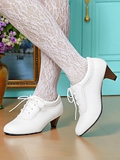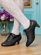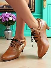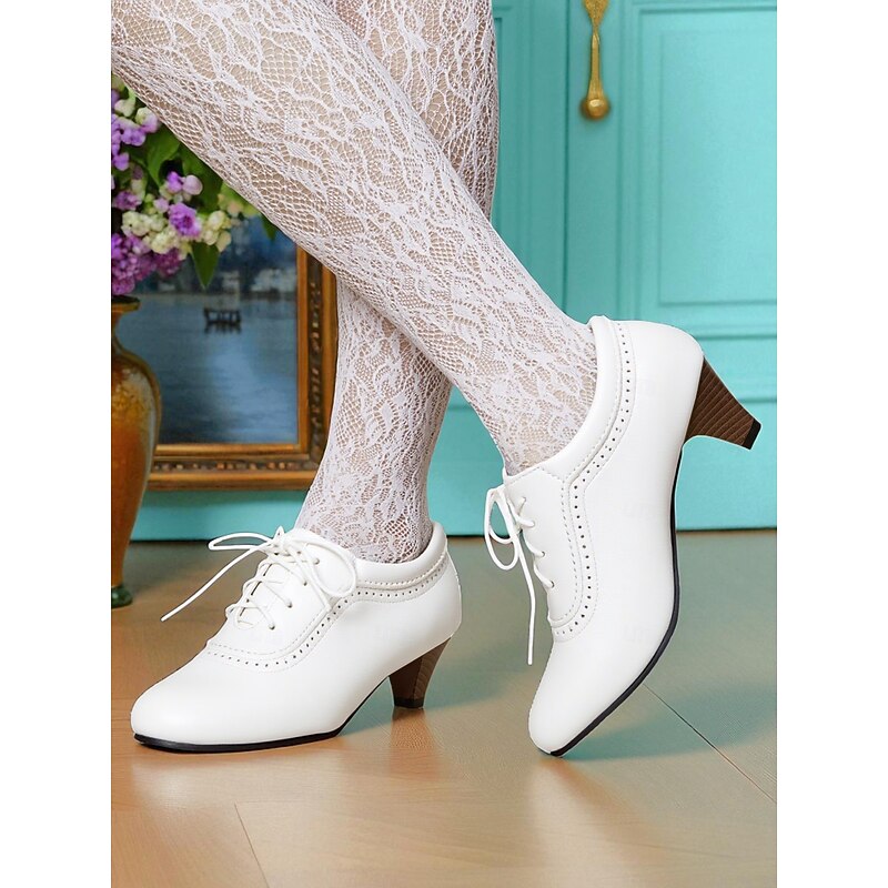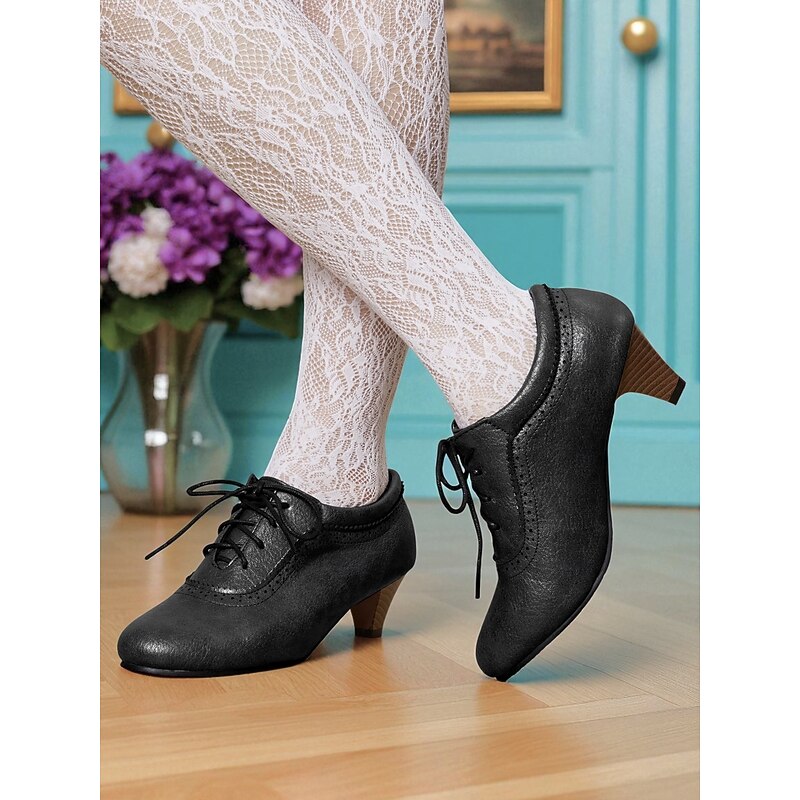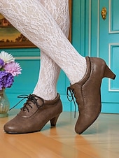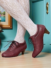 Women's Brown Lace-Up Oxford Heels with Low Block Heel and Brogue Detailing, 1950s Vintage Edwardian Style Dress Shoes for Cosplay, Retro Parties & Daily Fashion Outfits 20