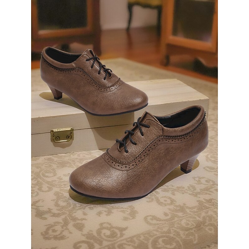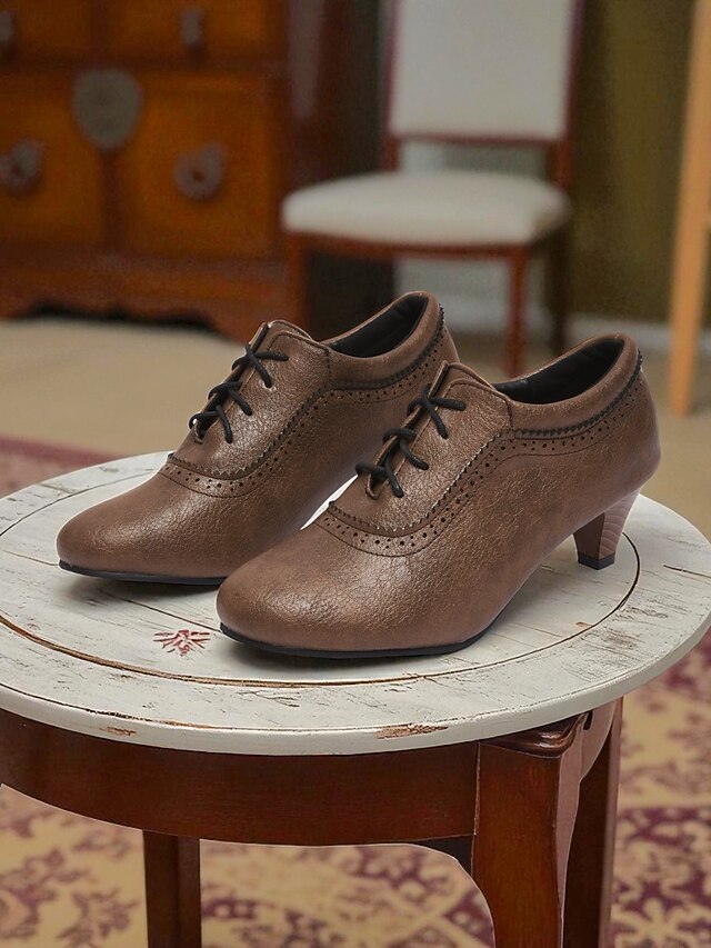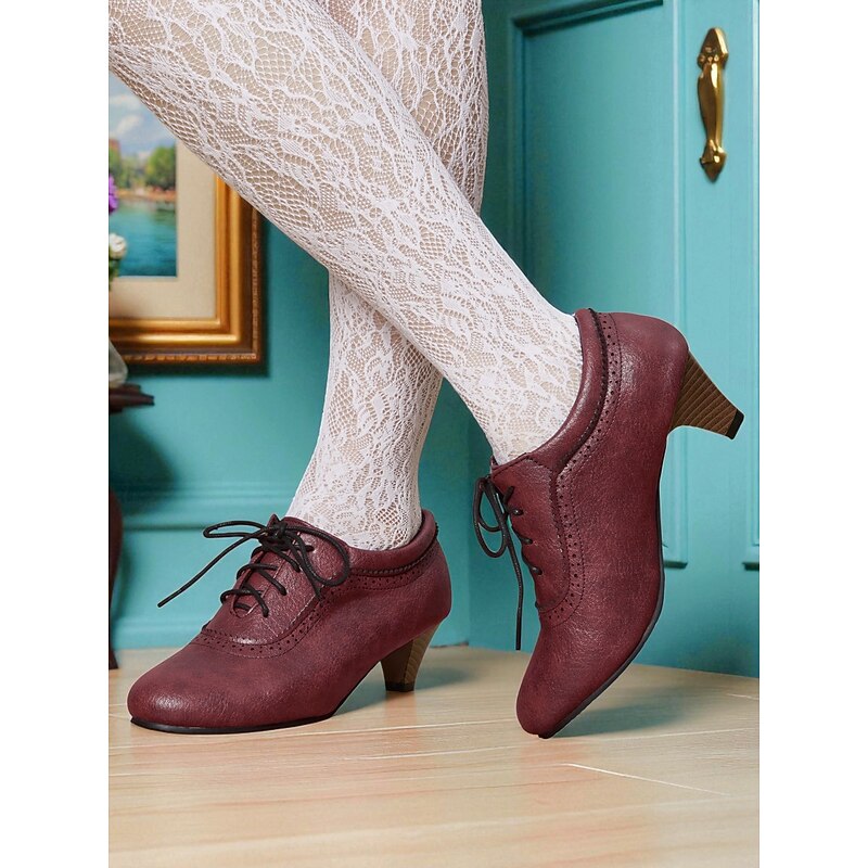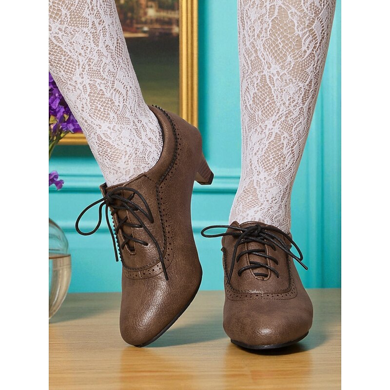 Women's Brown Lace-Up Oxford Heels with Low Block Heel and Brogue Detailing, 1950s Vintage Edwardian Style Dress Shoes for Cosplay, Retro Parties & Daily Fashion Outfits 21