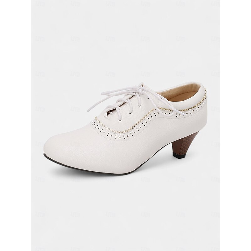 HOT ! Women's Brown Lace-Up Oxford Heels with Low Block Heel and Brogue Detailing, 1950s Vintage Edwardian Style Dress Shoes for Cosplay, Retro Parties & Daily Fashion Outfits