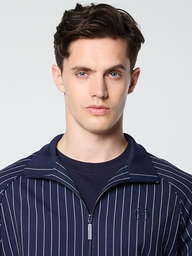 HOT ! Sergio Tacchini Men's Gessato Suiting Track Jacket- Maritime Blue