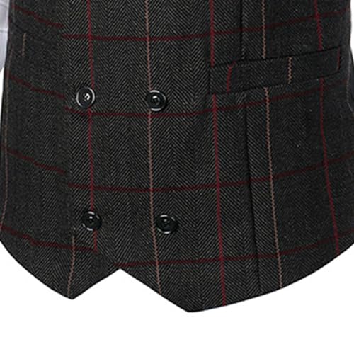 JEsilunmaMY Men's Double-Breasted Plaid Suit Vest Slim Fit Vintage Tweed Waistcoat Vest Business Formal Dress Tuxedo Vest 4