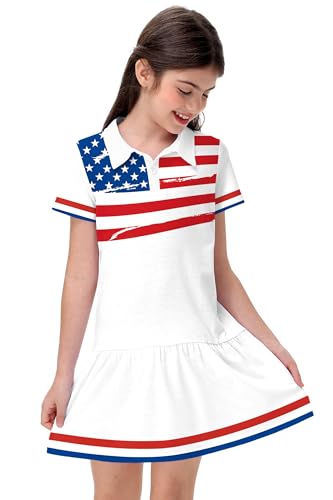 • Girls Holiday Polo Dresses: This dress features the classic Patriotic theme color, short sleeve and lapel collar design. It captures the joyous essence of july 4th, your girl will enjoy a wonderful festival