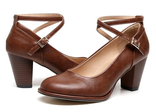 • Chunky heel pumps with adjustable buckle ankle strap