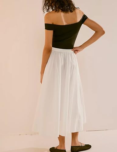 • Features: solid color, elastic waistband for pull-on ease, pleating throughout, side pockets, mid-rise, billowy A-line silhouette, this midi skirt combines elegance with effortless style, a perfect piece for any wardrobe
