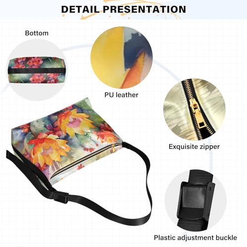 More information about Shoulder Bag for Women-Watercolor Cactus Print, Large Capacity Leather Crossbody Purse Handbags Zipper Closure with Fabric Strap