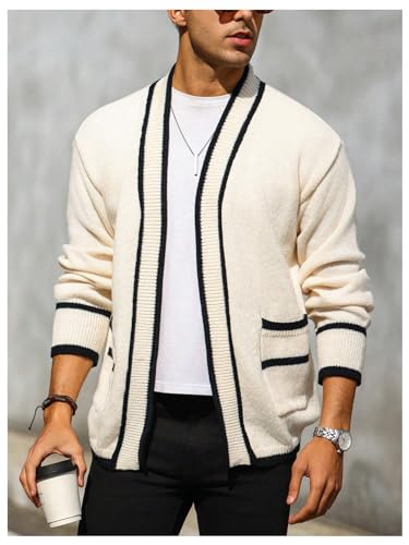HOT ! Floerns Men's Long Sleeve Cardigan Sweaters Vintage Open Front Knitted Sweaters