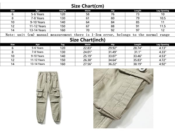 • Functional Design: These kids' cargo pants feature multiple pockets for storing small essentials,suitable for all seasons.