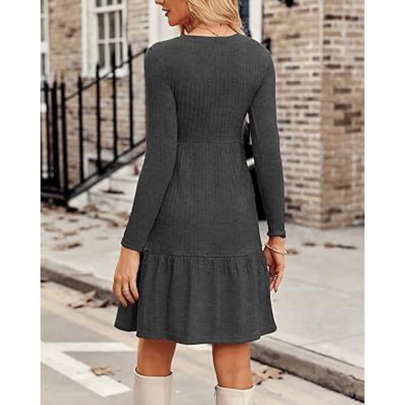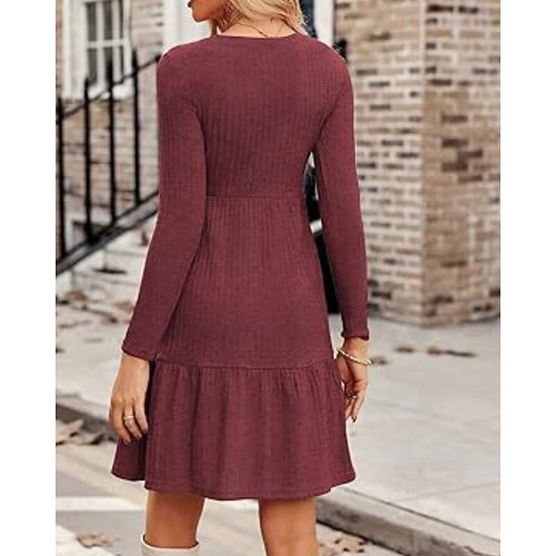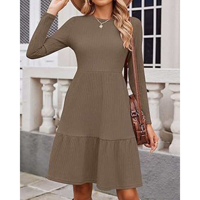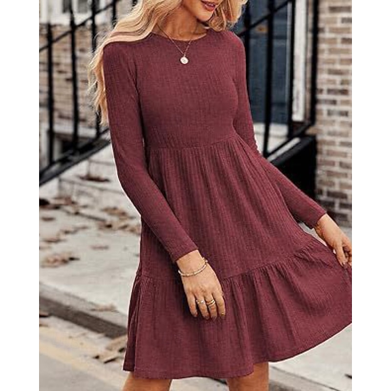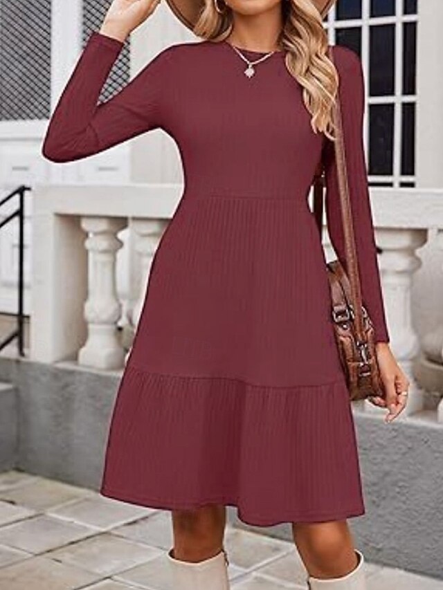 More information about Women's Mini Dress Sweater Dress Casual Dress Modern Outdoor Daily Going out Regular Fit Plain Long Sleeve Crew Neck Wine Brown Green Grey Spring Fall