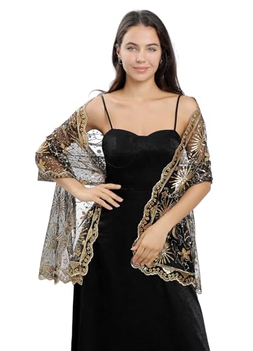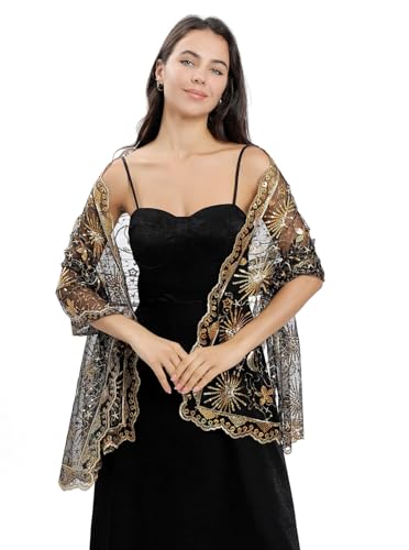 HOT ! OurLore Women's Glittering 1920s Shawl Scarf Mesh Sequin Wedding Bridal Cape Fringed Evening Wraps Shawls