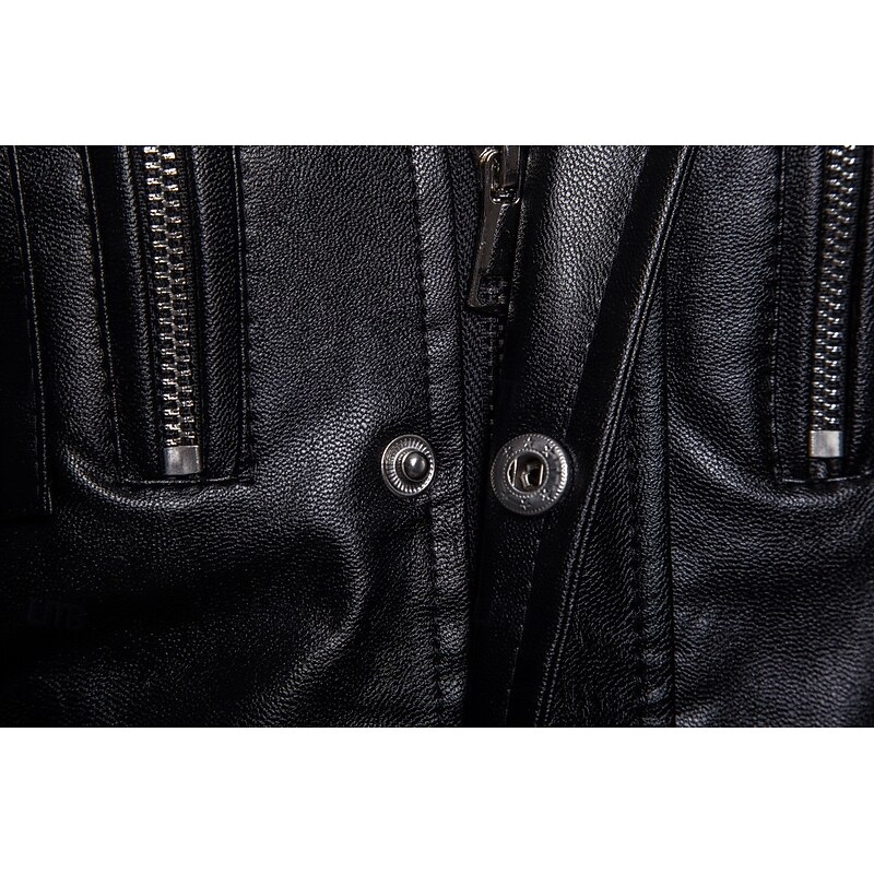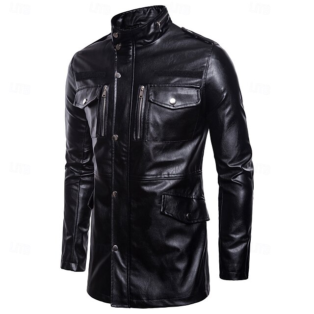 More information about Men's Faux Leather Jacket Biker Jacket Motorcycle Jacket Home Office Windbreaker Pocket Winter Spring & Fall Solid Color Vintage Classic Style Regular Black Jacket