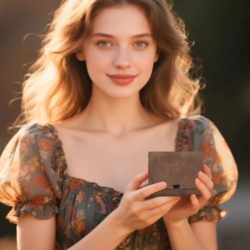 Trifold Wallets for Women, Soft PU Leather Slim Card Wallet Compact Mens Trifold Wallets with Snap Ladies Wallet for Working Traveling Shopping (Brown) 6