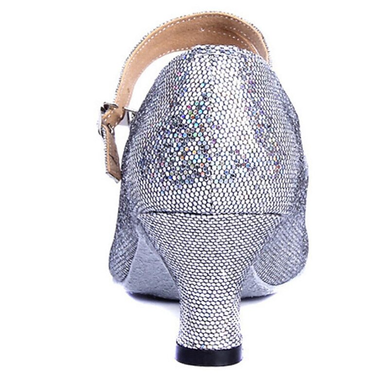 Women's Glitter Ballroom Dance Shoes – Silver Sparkly Mary Jane Heels with Adjustable Strap for Latin Tango Performance 5