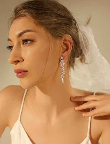 • Great Materials: These silver threader earrings are made of 14K white gold platied and 925 sterling silver ear clip, nickel-free, lead-free, not easy to fade and oxidize, comfortable to wear, perfect for sensitive ears. Selected 5A cubic zirconia keeps the sliver dangle earrings beautiful and sparkling at all times.